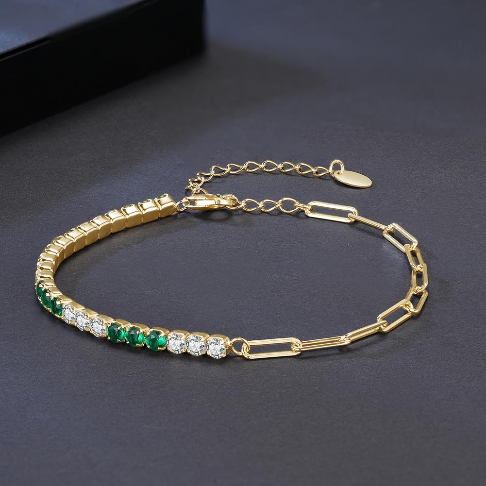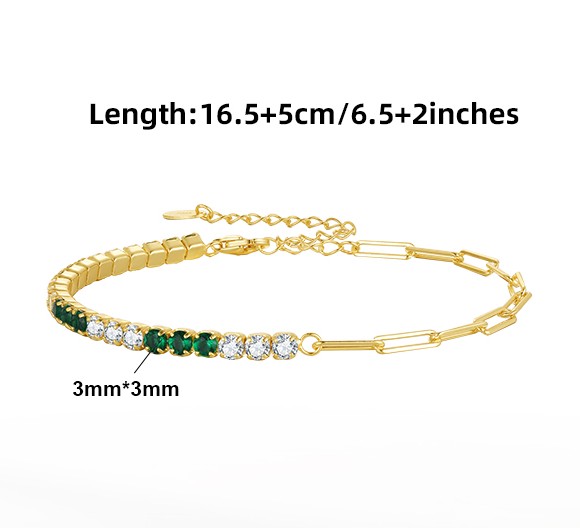 925 Sterling Silver 3MM Cubic Zirconia Tennis Bracelet With Paper Clip Chain